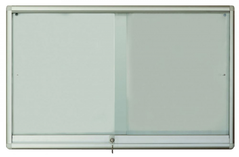 Elegancka o klasycznym wyglądzie gablota wykonana z odpowiednio zaprojektowanych profili aluminiowych anodowanych na kolor srebrny, łączonych za pomocą plastikowych narożników w kolorze szarym lub czarnym.