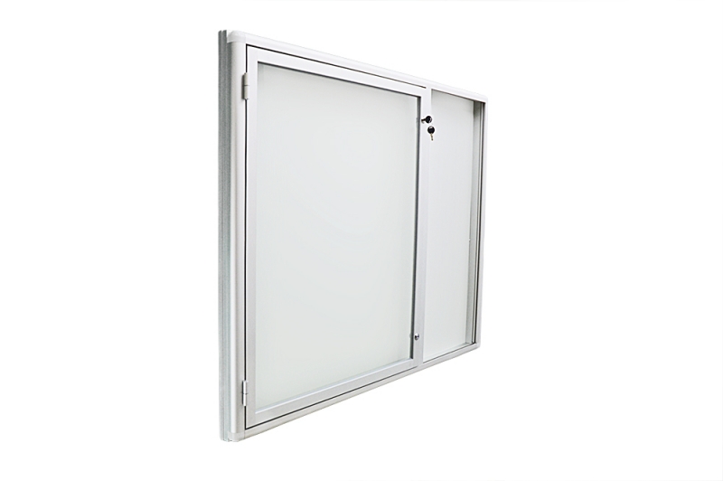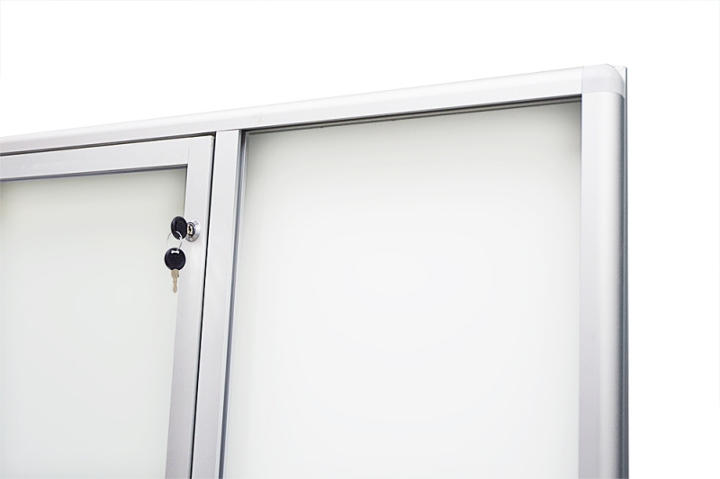 Gablota ogłoszeniowa posiada jedno skrzydło otwierane na bok, które można zamknąć za pomocą solidnego zamka patentowego. Skrzydło jest wykonane z szyby hartowanej o grubości 4mm.