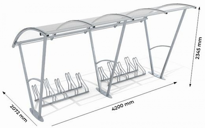 Stalowa wiata rowerowa "Świt" zadaszona poliwęglanem bez ścian bocznych na 5 rowerów 210cm