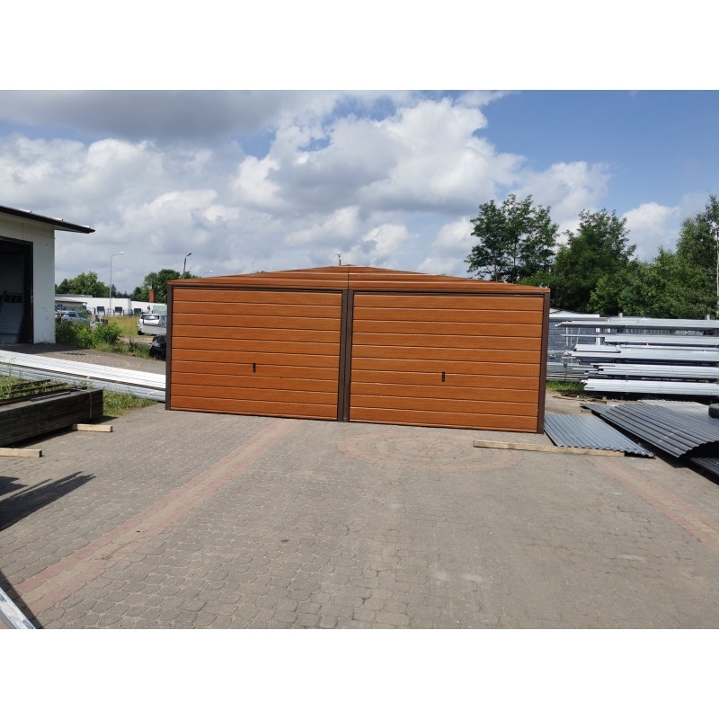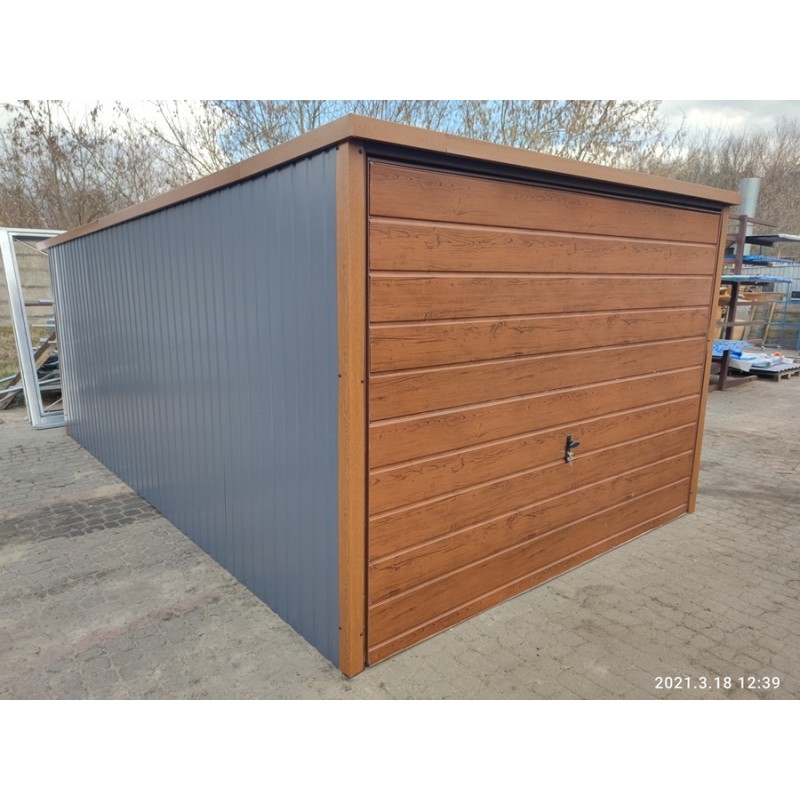 Garaż Blaszany 6X5 Drewnopodobny Bramy Uchylne