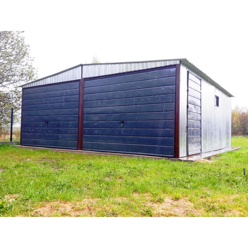 Garaż Blaszany 6X6 Ocynkowany Bramy Uchylne Dach Dwuspadowy Dodatkowe Drzwi, Okno