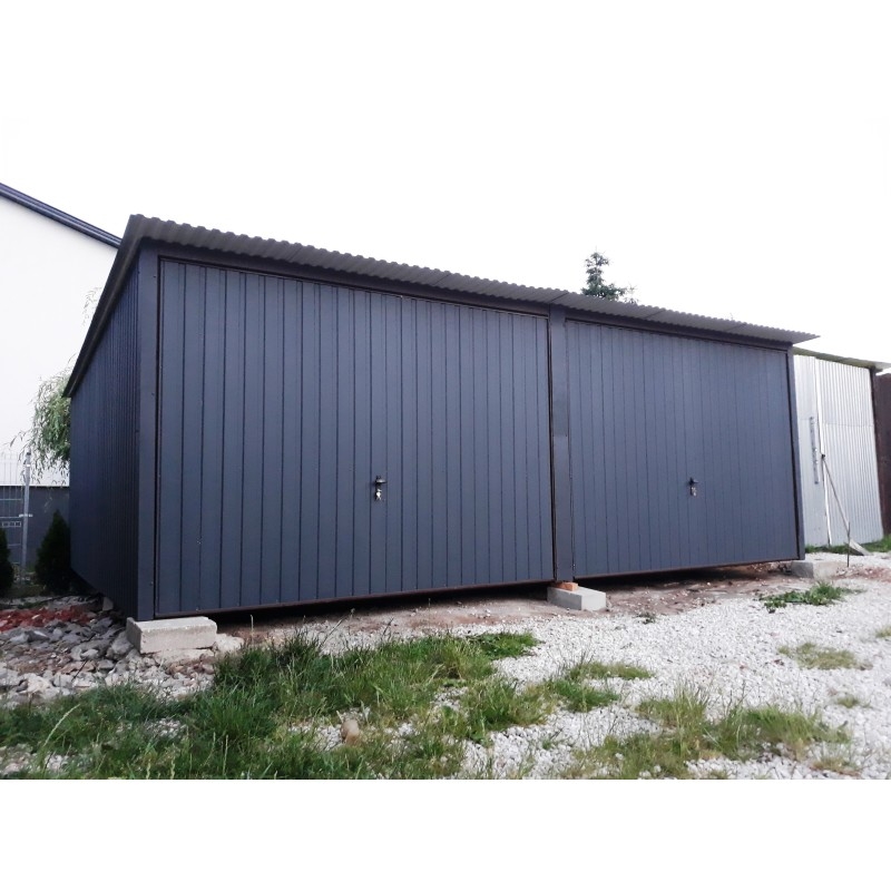 Garaż Blaszany 6X5 Kolor Grafit Dach Jednospadowy Bramy Uchylne