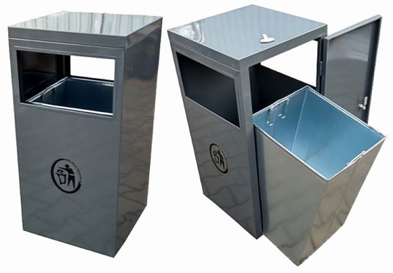 Kosz na śmieci z blachy ocynkowanej z daszkiem 46 L