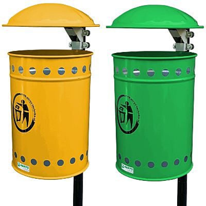 Kosz uliczny na śmieci 30 litrów stalowy ocynkowany z daszkiem K3