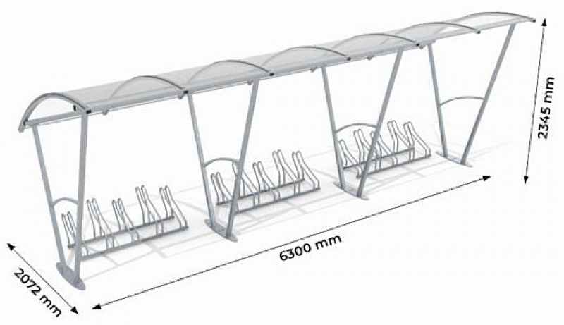 Wiata rowerowa zadaszona poliwęglanem DELTA